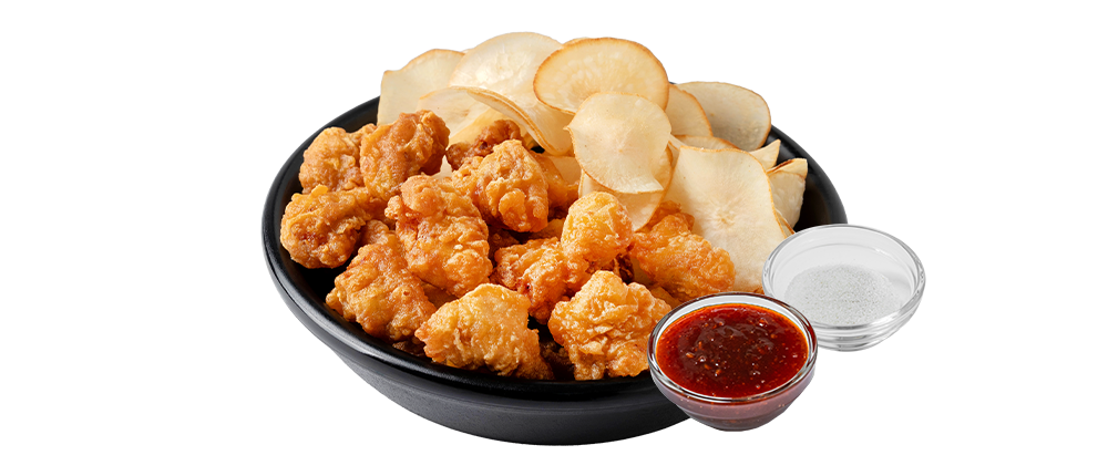 Mozza Crunch(3ea)Loaded with whole mozzarella! A one-of-a-kind menu featuring savory brown rice crunch, tender Korean chicken, and 100% natural cheese.
